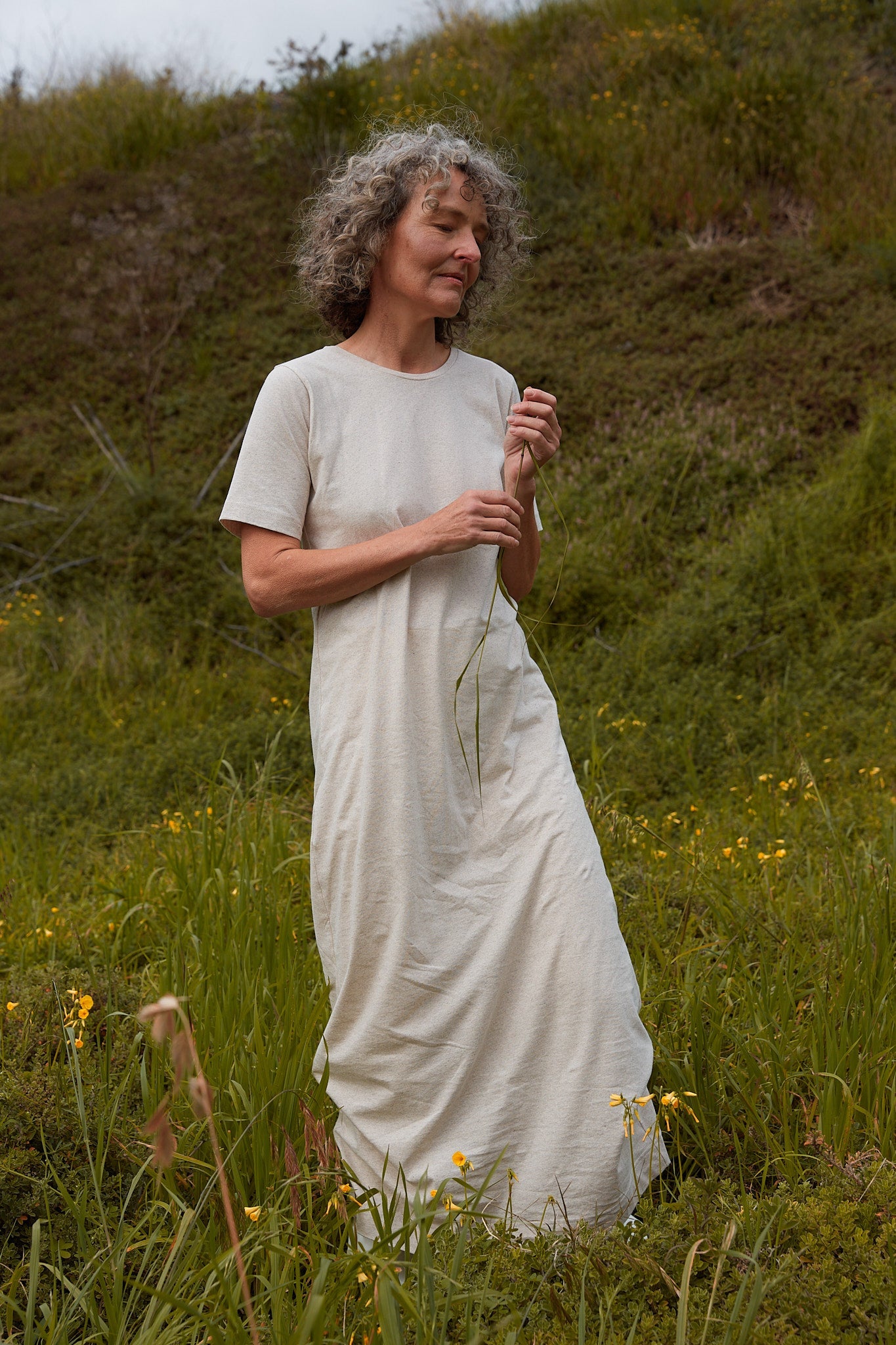 The finished recycled yarns are sent direct to our local mill partner MTK, who knit it into a beautiful, soft, mid-weight jersey. Delightful.