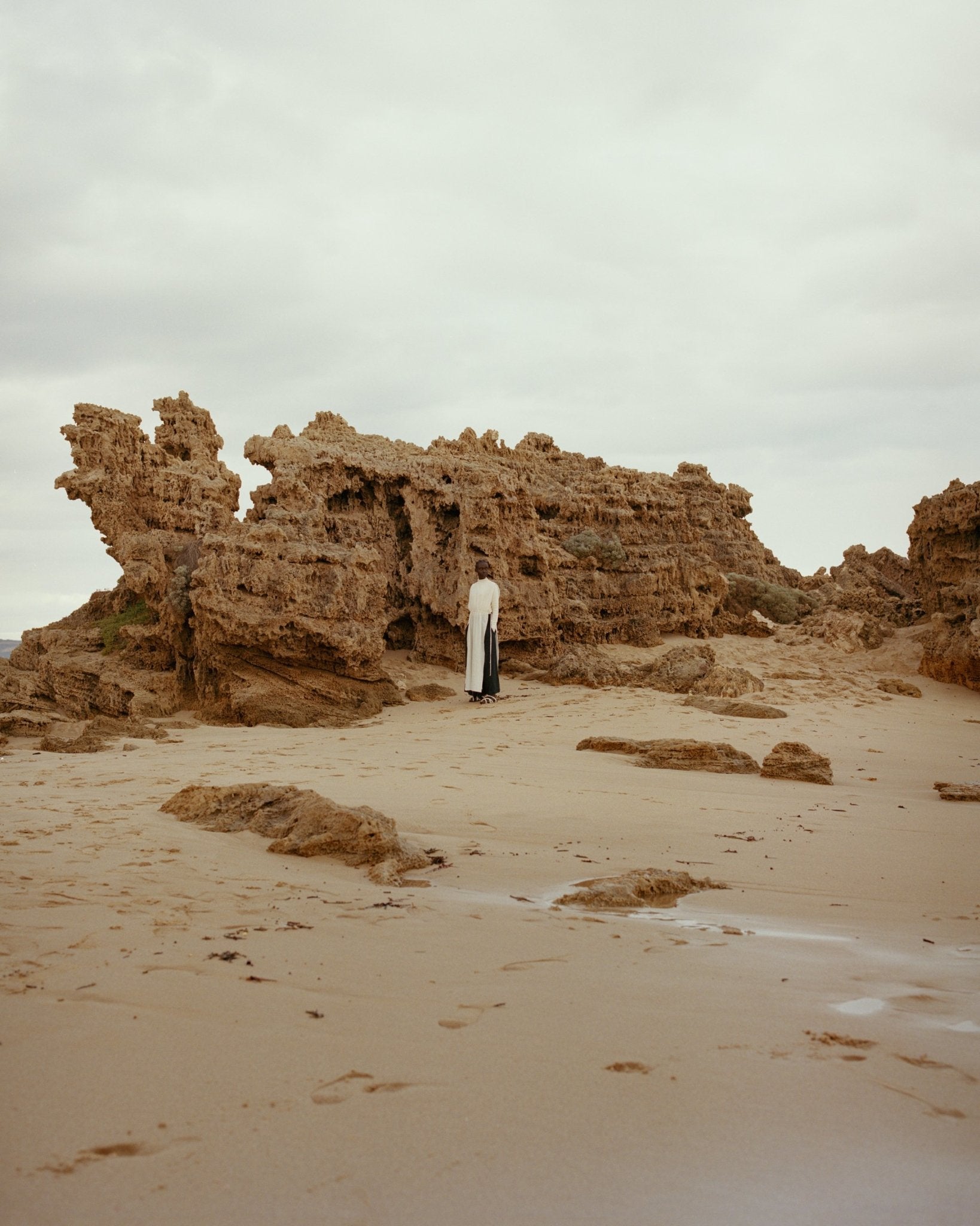 Our campaign features models left to right, Adhel and Lezlie. Adhel wears the A.14 Long Sleeve Skivvy in Undyed, the A.10 Palazzo Trousers in Black + Red Line - The Styling Piece 2 in Bone (coming November 21). Lezlie wears the A.36 Mock Neck Skivvy in Undyed and the A.41 Oversize Shirt in Bone (coming November 21).