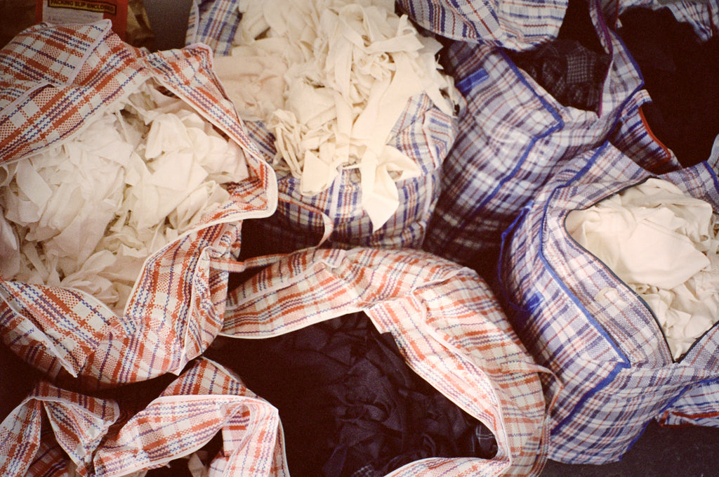 If none of this is appropriate, we'll decommission these pieces (disassemble them) and categorise by fibre and colour. When we have enough of that same fibre/colour type, we'll send it off to be shredded, blended and re-spun into into new recycled yarns to use in future A.BCH pieces.
